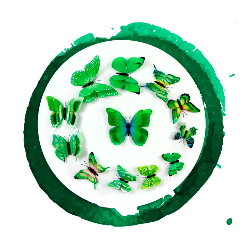 Бабочки на магните двойные пластиковые 12 шт зеленый с рис.