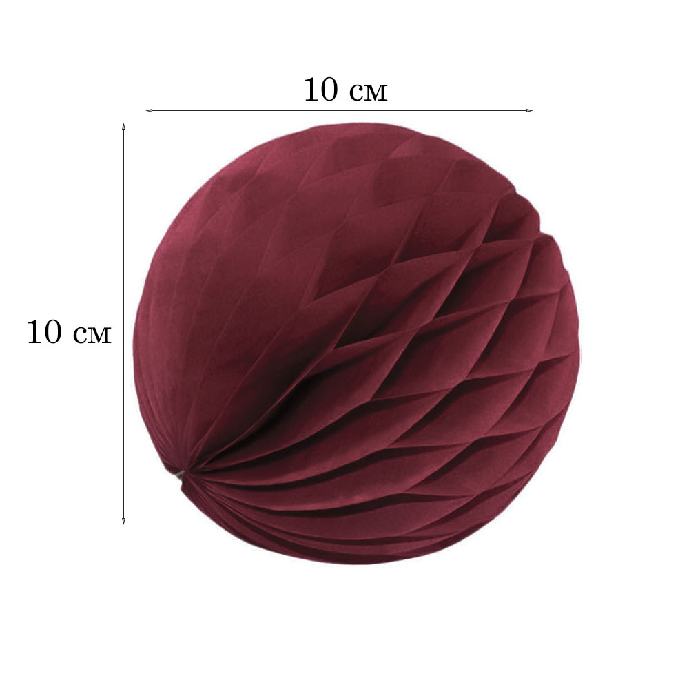 Бумажное украшение шар 10 см, бордовый