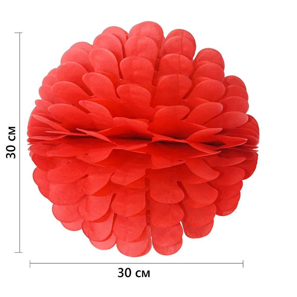Бумажное украшение Цветочный шар-соты 30 см, красный