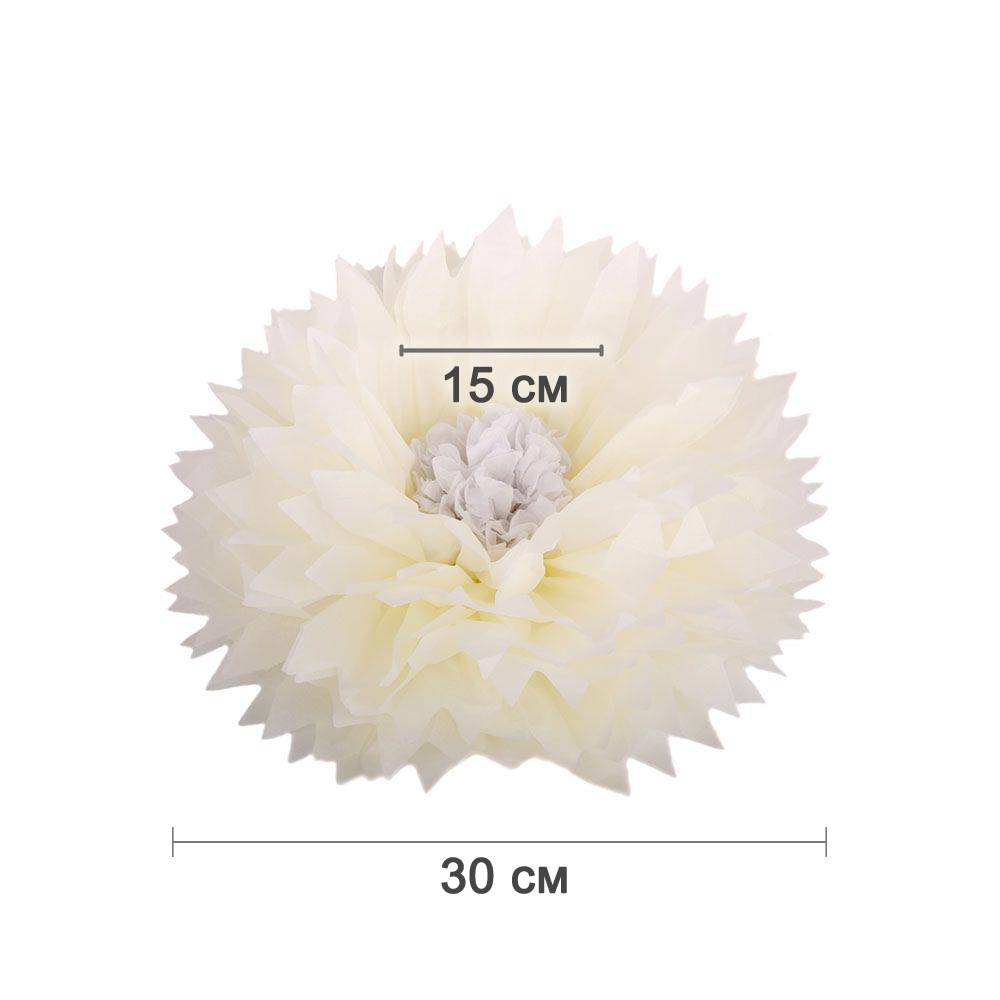 Бумажный цветок 30 см айвори+белый