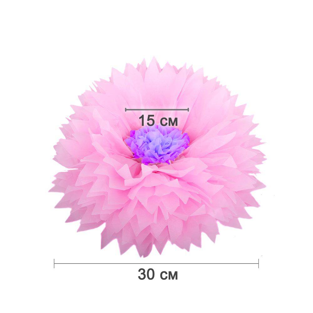 Бумажный цветок 30 см розовый+светло-сиреневый