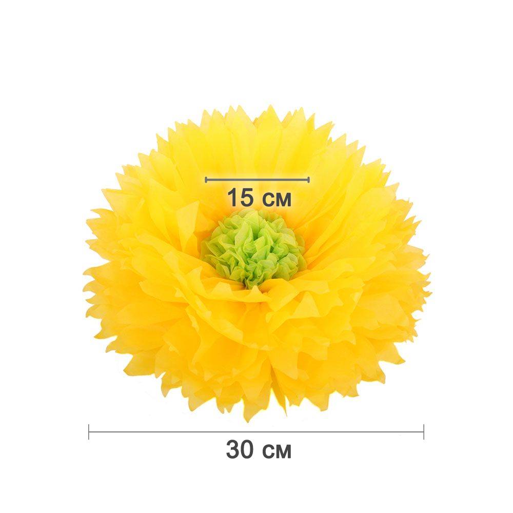 Бумажный цветок 30 см ярко-желтый+салатовый