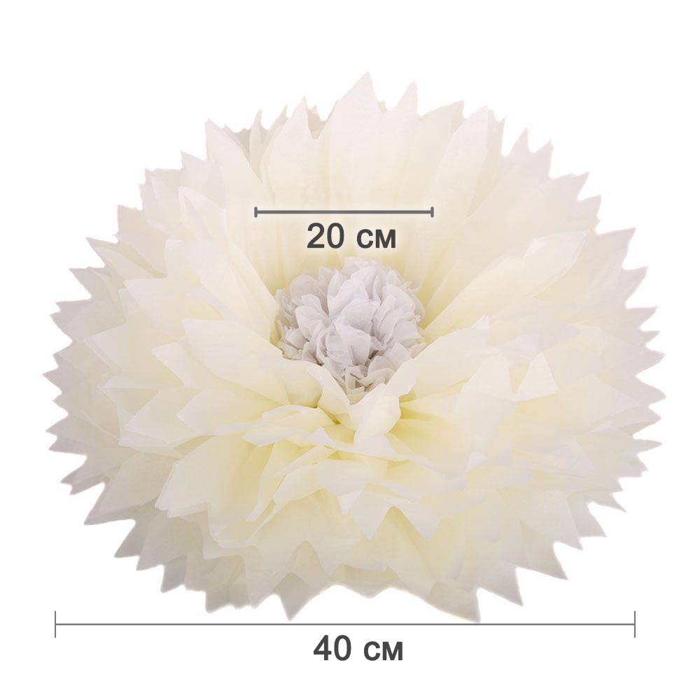 Бумажный цветок 40 см айвори+белый