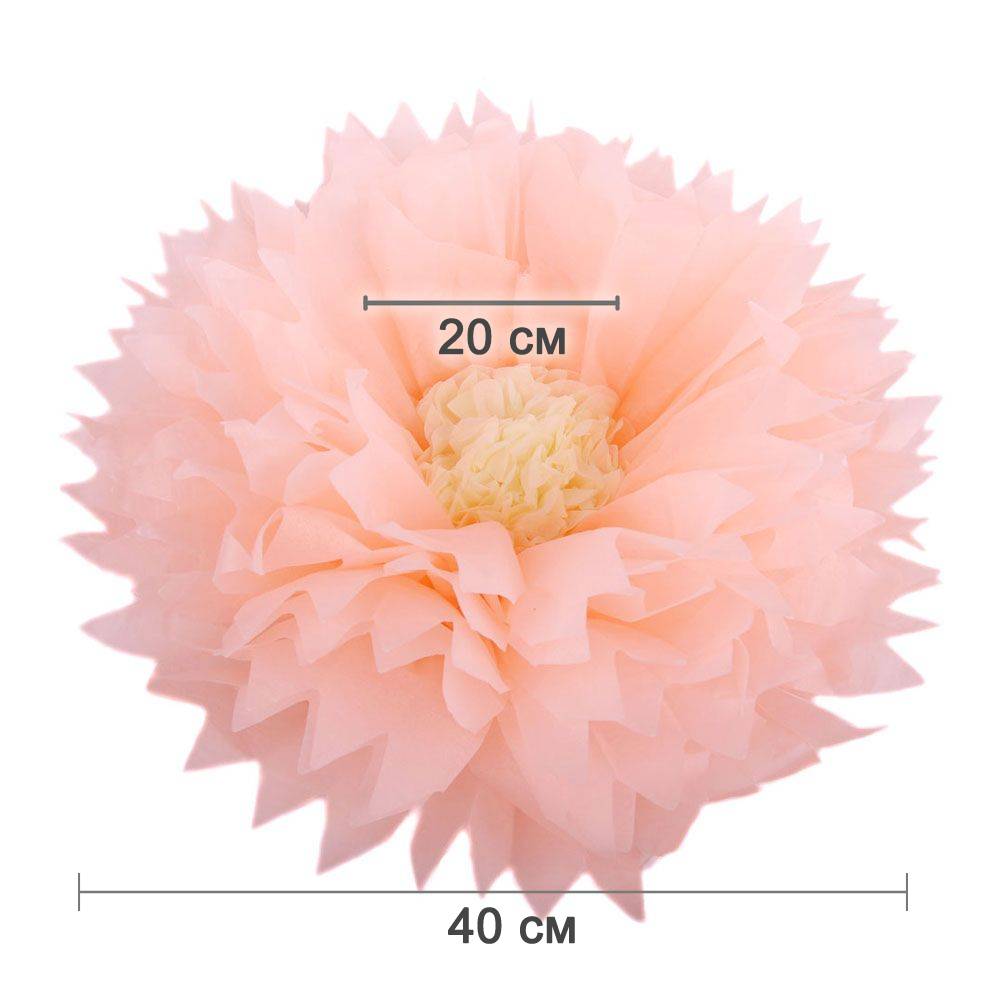 Бумажный цветок 40 см персиковый+айвори