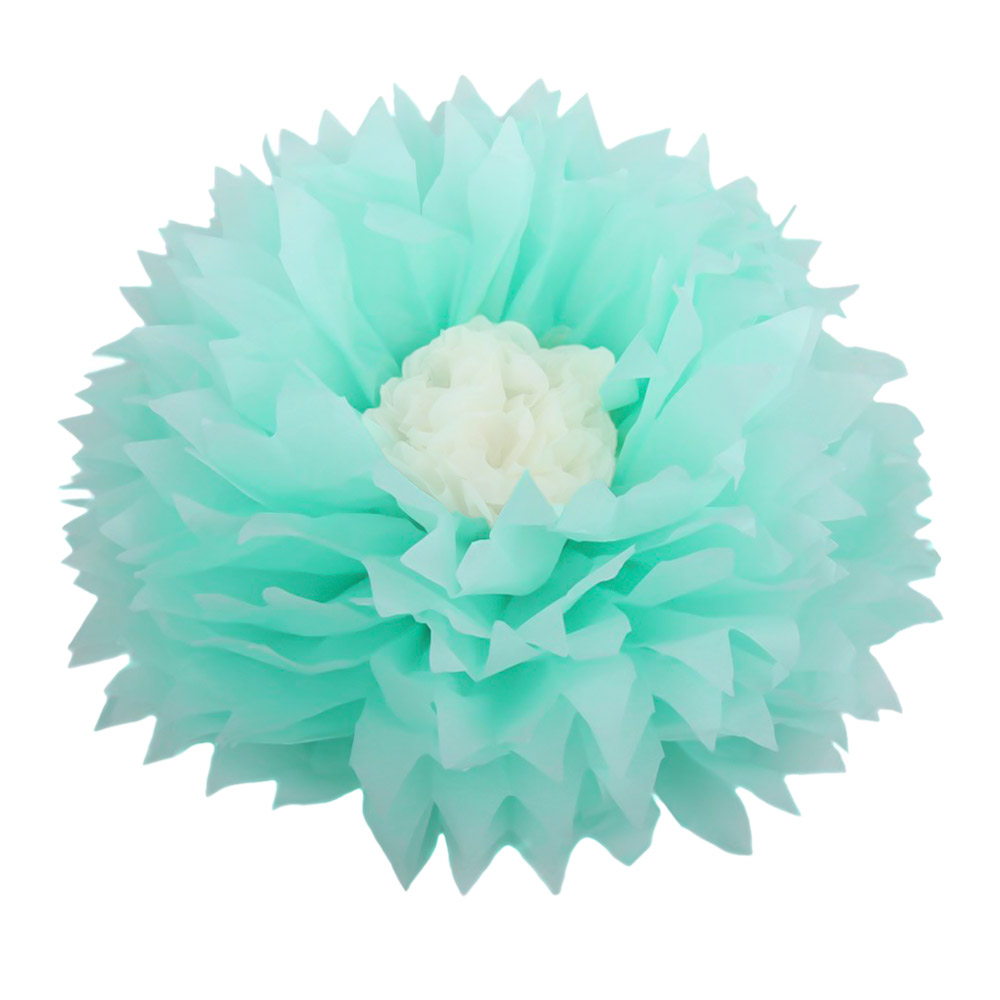 Бумажный цветок 40 см мятный+белый