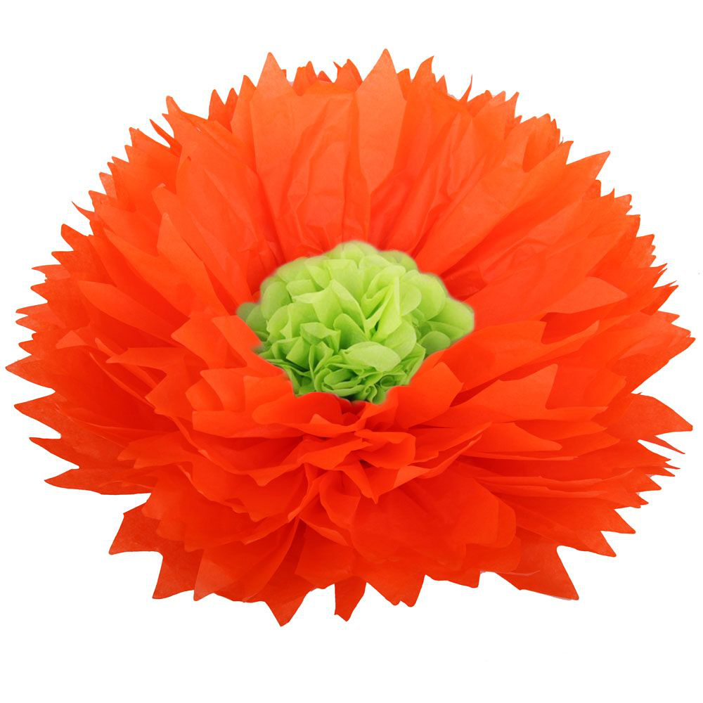 Бумажный цветок 50 см оранжевый+салатовый