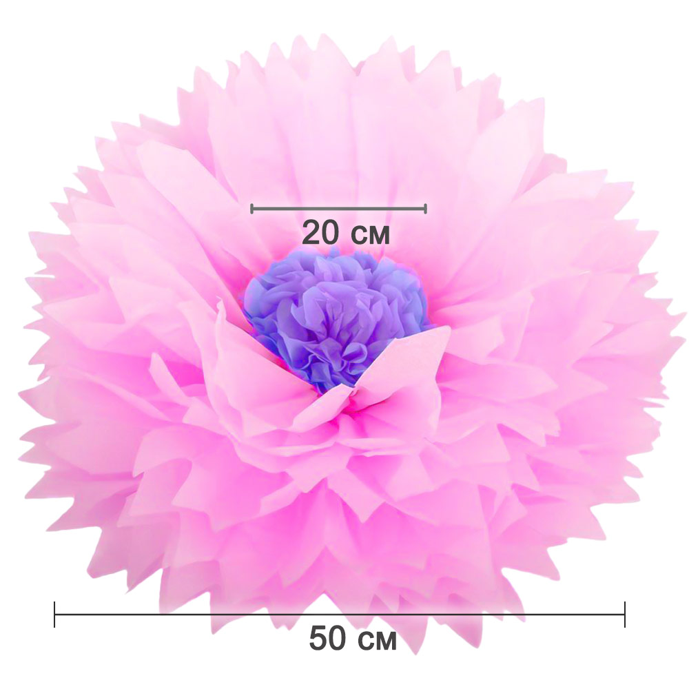 Бумажный цветок 50 см розовый+светло-сиреневый