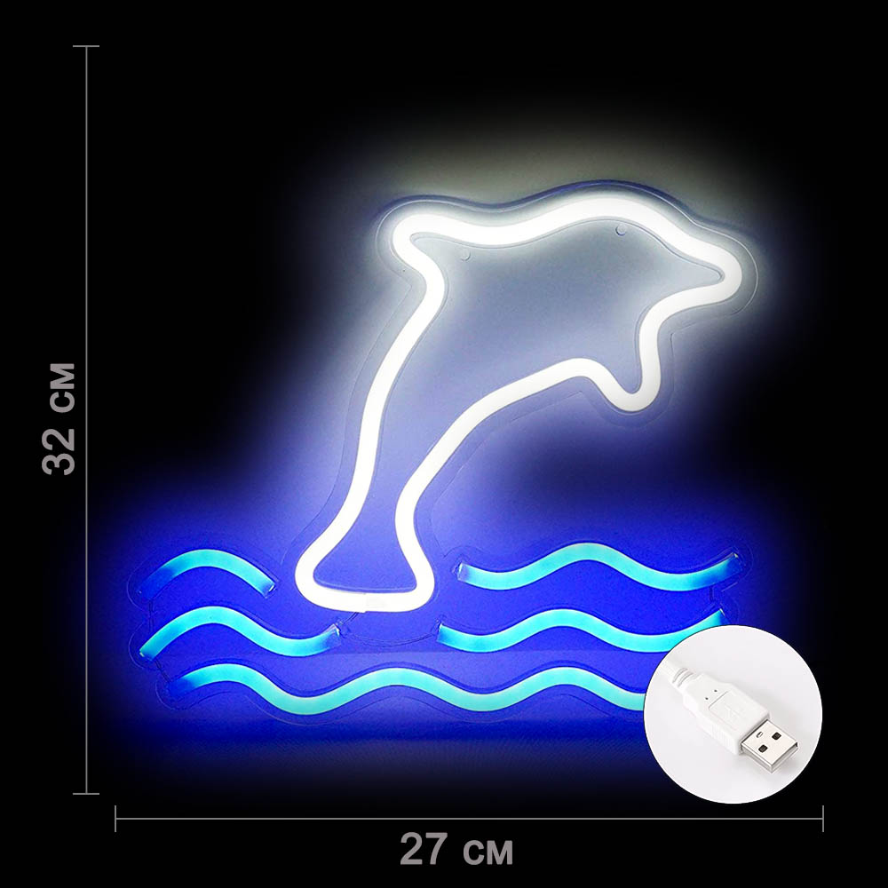 Cветильник LED NEON "Дельфин" 27 х 32 см, от USB