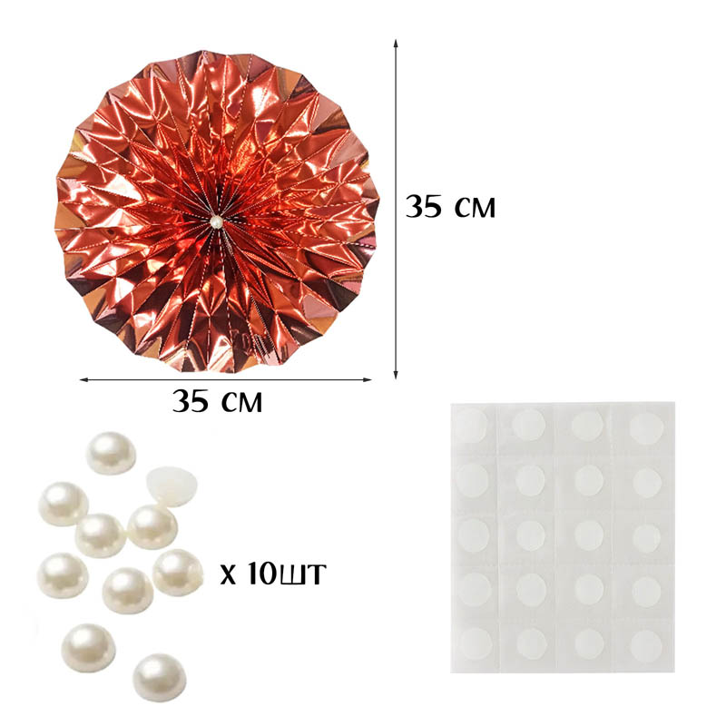 Фанты фольгированные с жемчужиной НАБОР 10шт х 35см, розовое золото