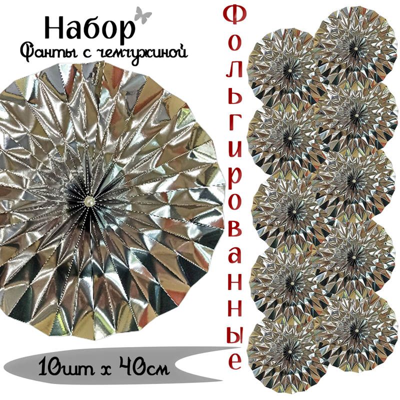 Фанты фольгированные с жемчужиной НАБОР 10шт х 40см, серебро