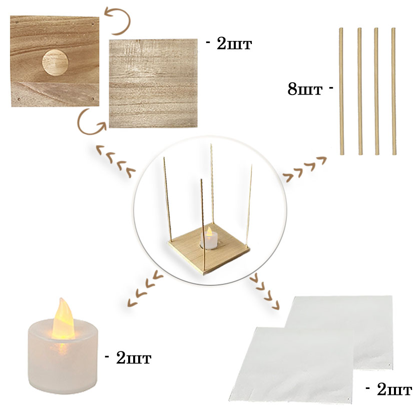 Фонарик на деревянной доске LED, 2шт 15х16см