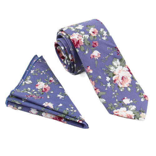 В комплект входит галстук 6х145 см и нагрудный платок 24х24 см изготовлены из хлопка, имеют цветочный принт.