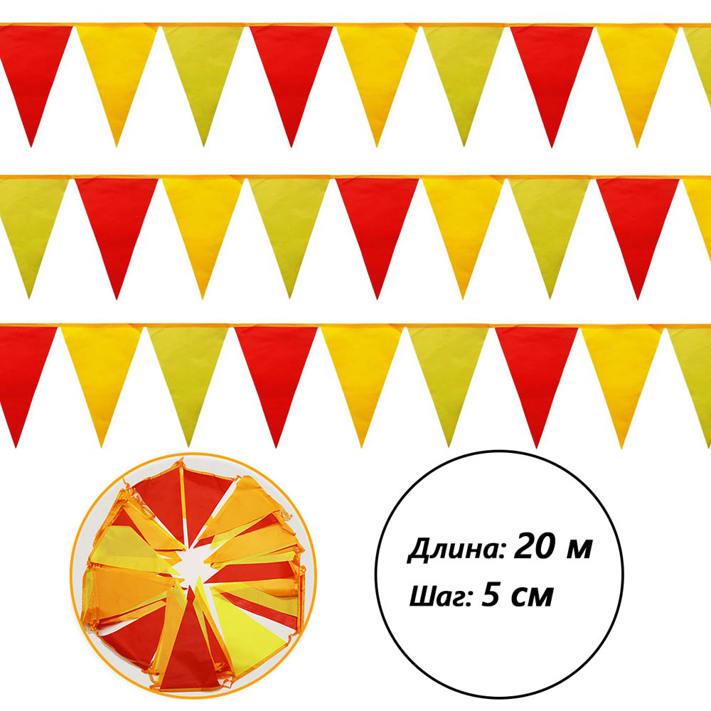 Гирлянда флажковая уличная 20 м, шаг 5 см, Солнце