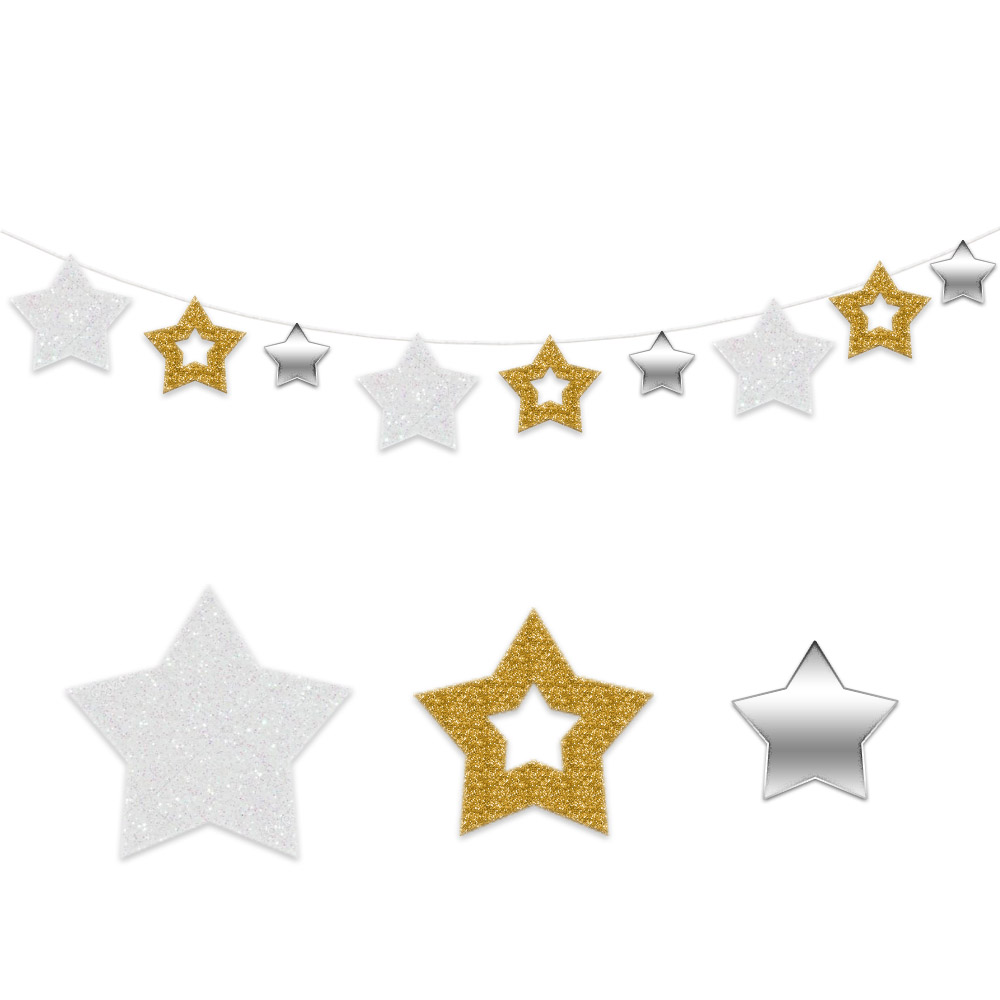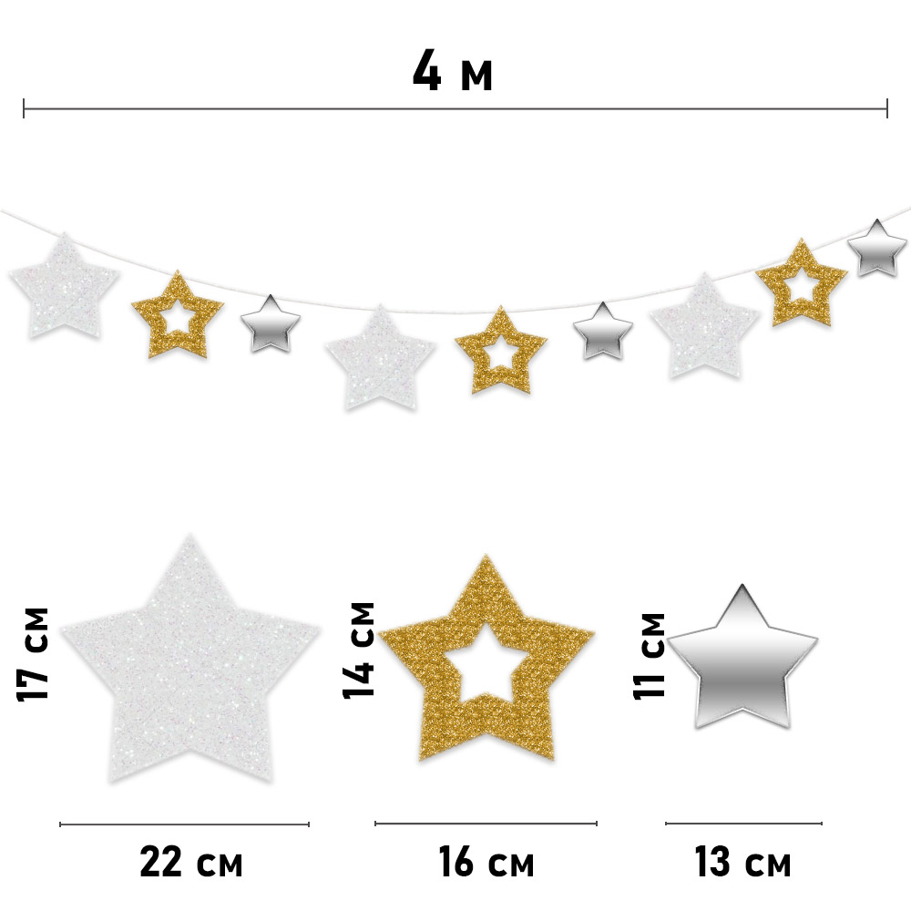 Гирлянда на ленте "Звезды" золото/серебро 4 м