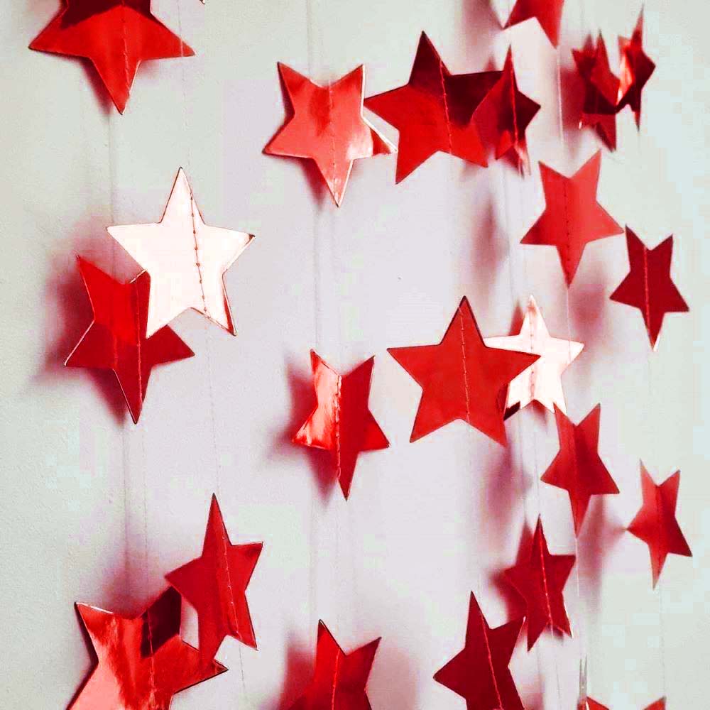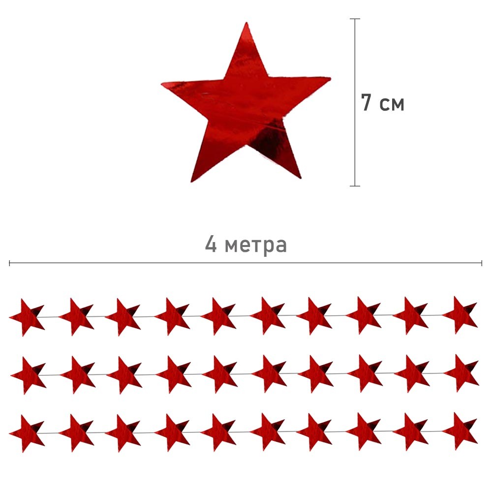 Гирлянда Звезды металлик 7 см 4 м красный