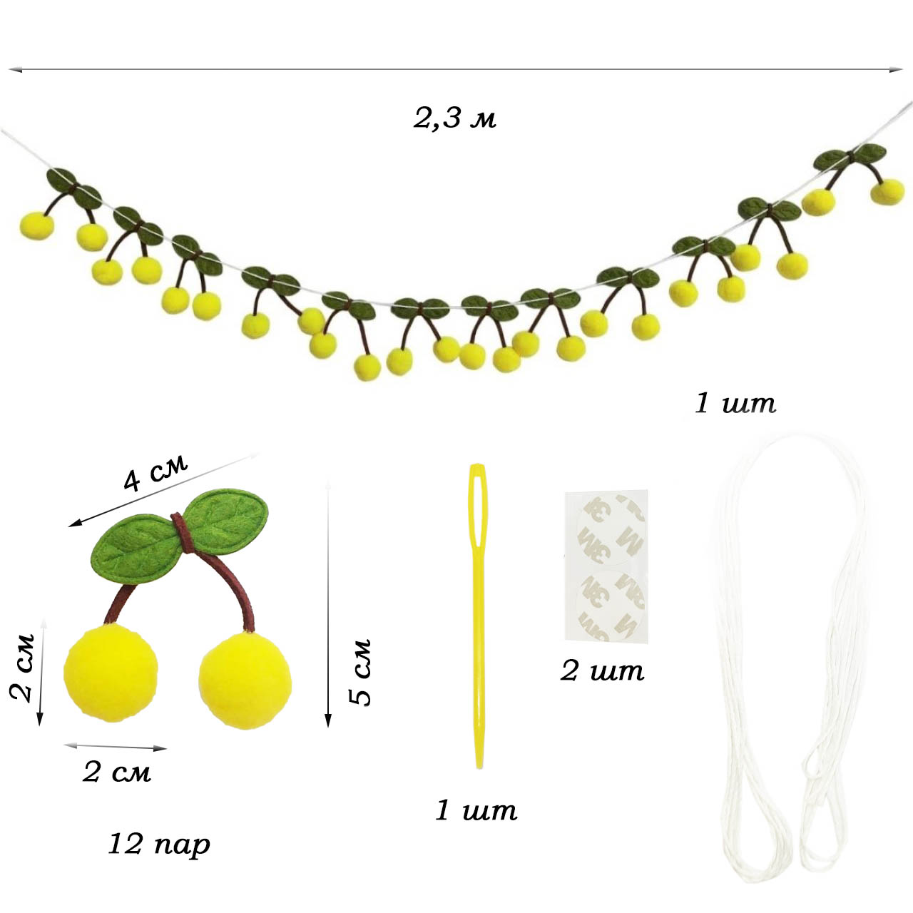 Количество вишенок на гирлянде - 12 пар.,