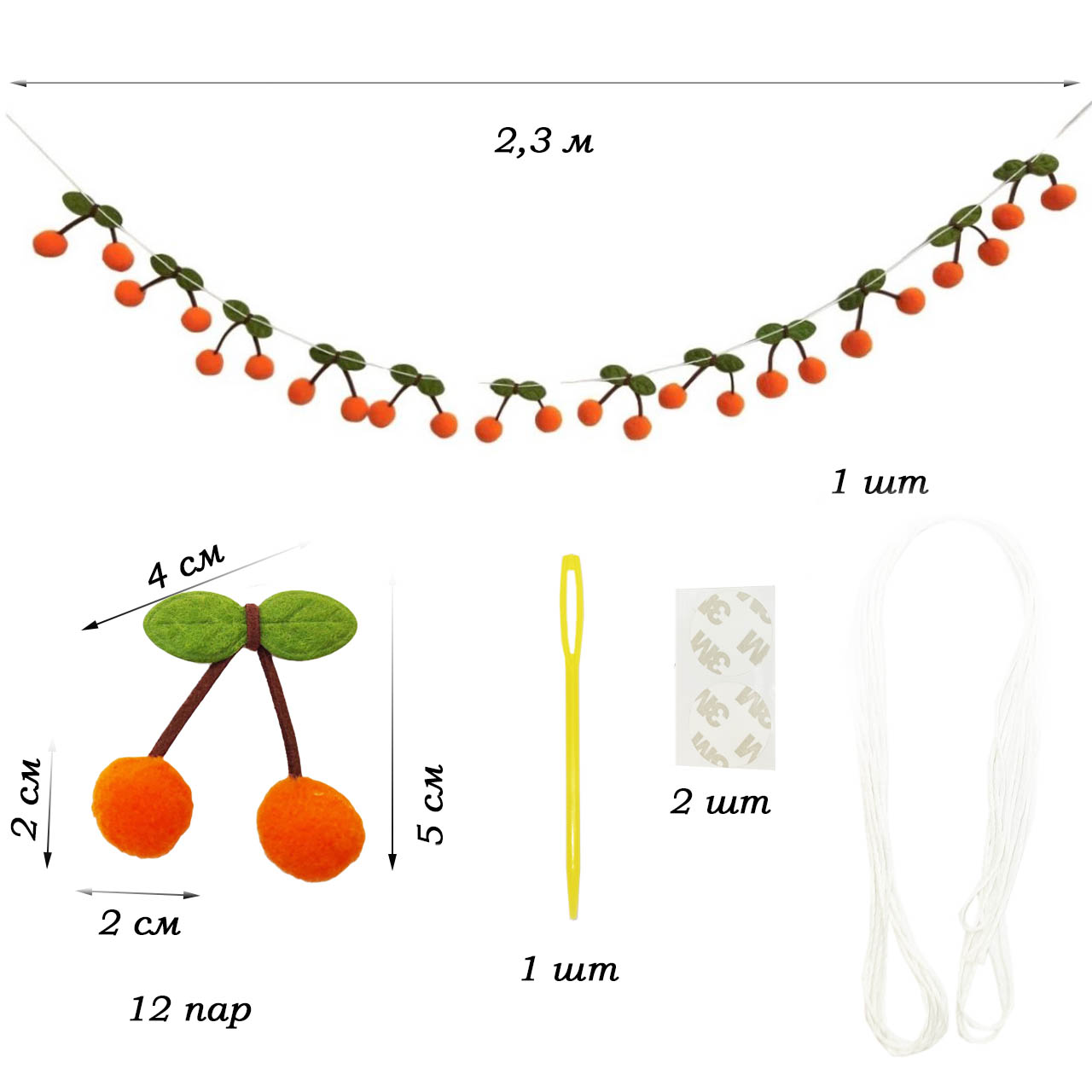 Количество вишенок на гирлянде - 12 пар.,