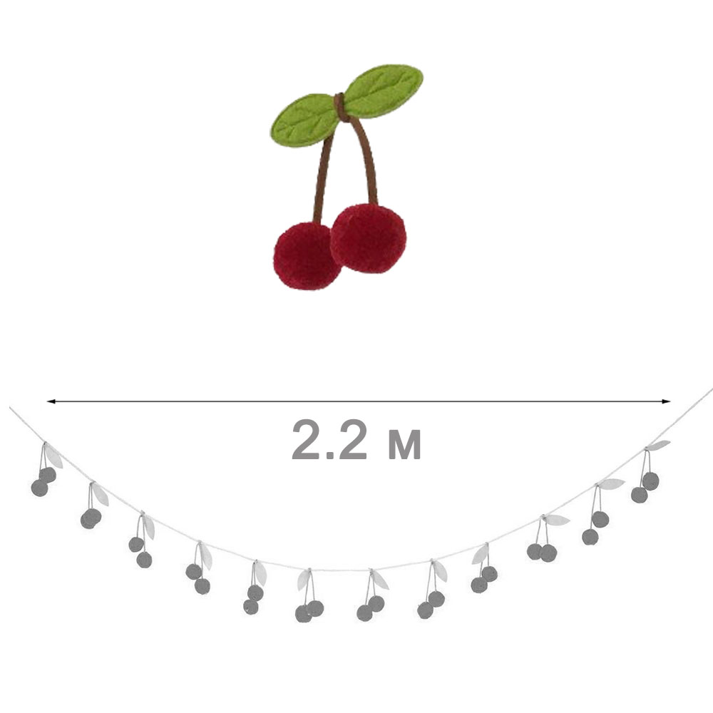 Количество вишенок на гирлянде 24 шт., общая длина составляет 2,2 м.