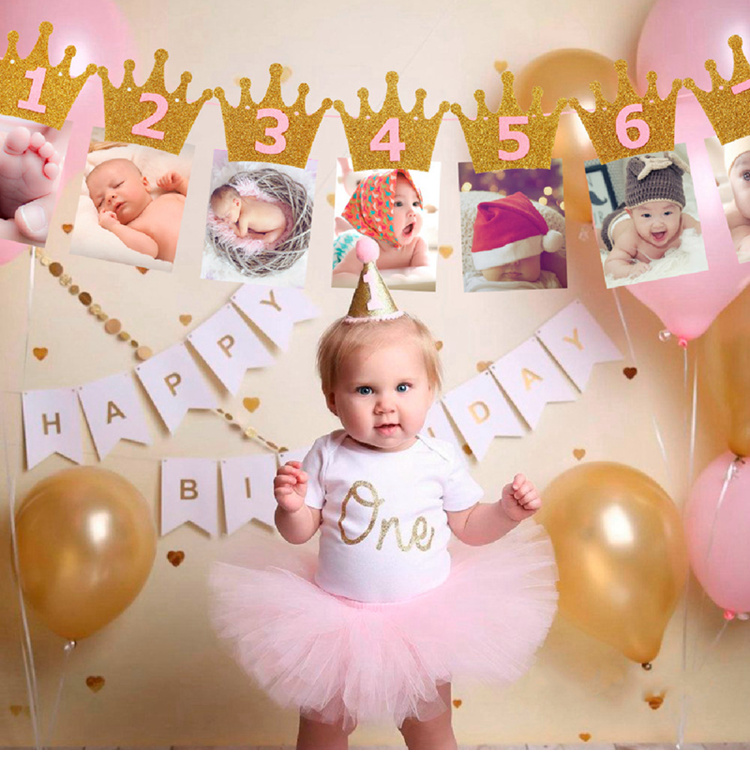 Гирлянда Первый годик, с прищепками для фото 3 м, золото