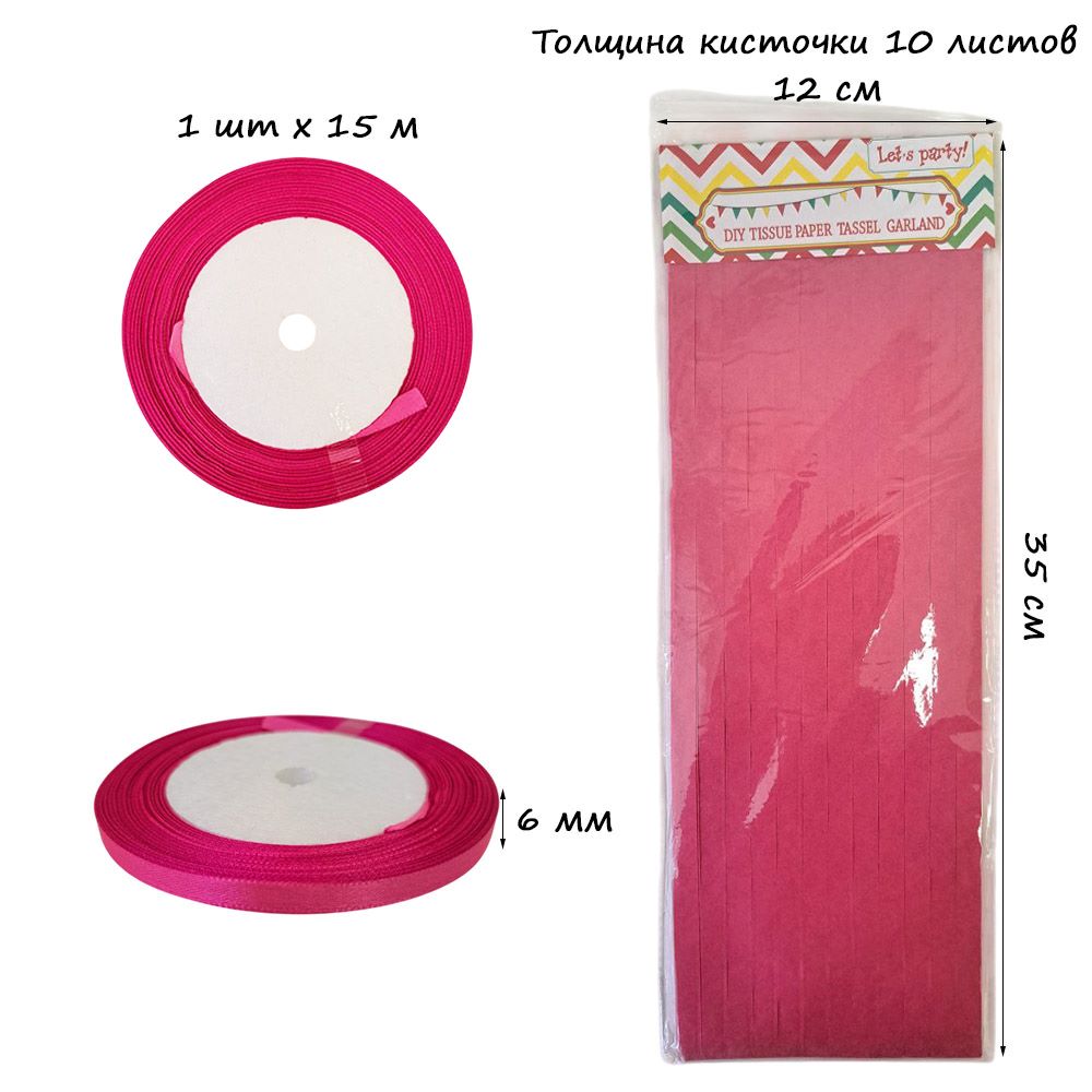 Гирлянда тассел 12 кисточек по 10 листов, амарантовый