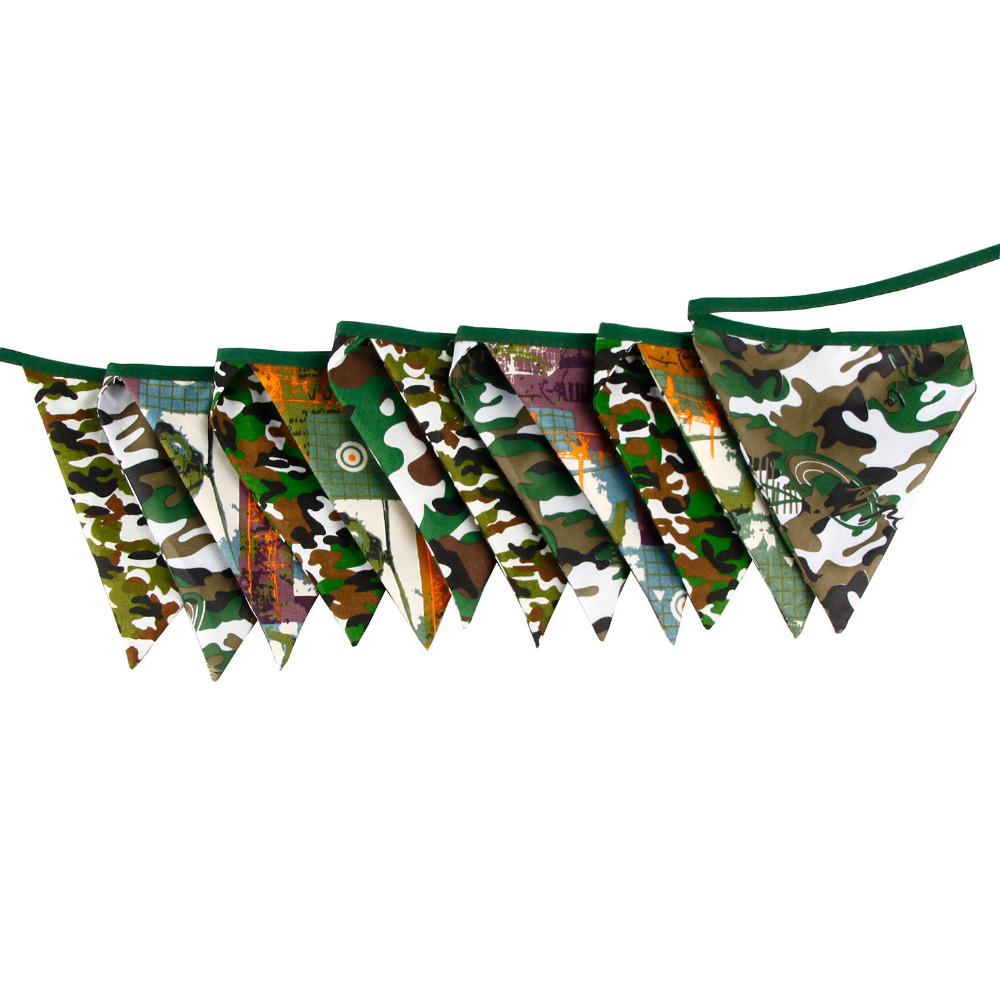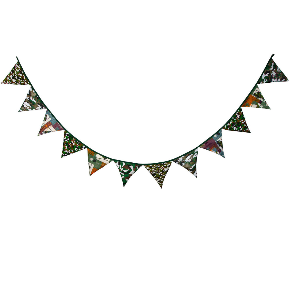 Гирлянда состоит из 12 флажков. Расстояние между флажками - 6 см, общая длина составляет 4 м.