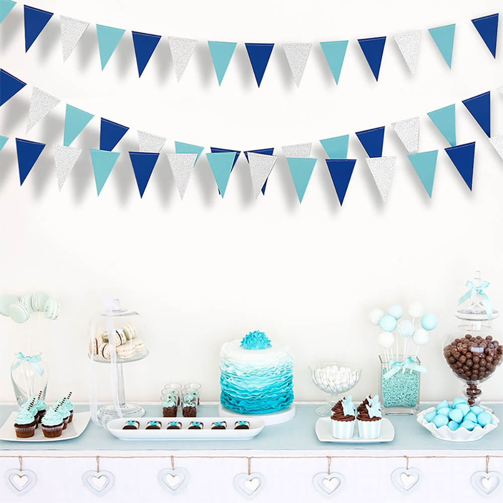 Гирлянда-вымпел 9 х 14 см голубой+серебро+синий 4 м