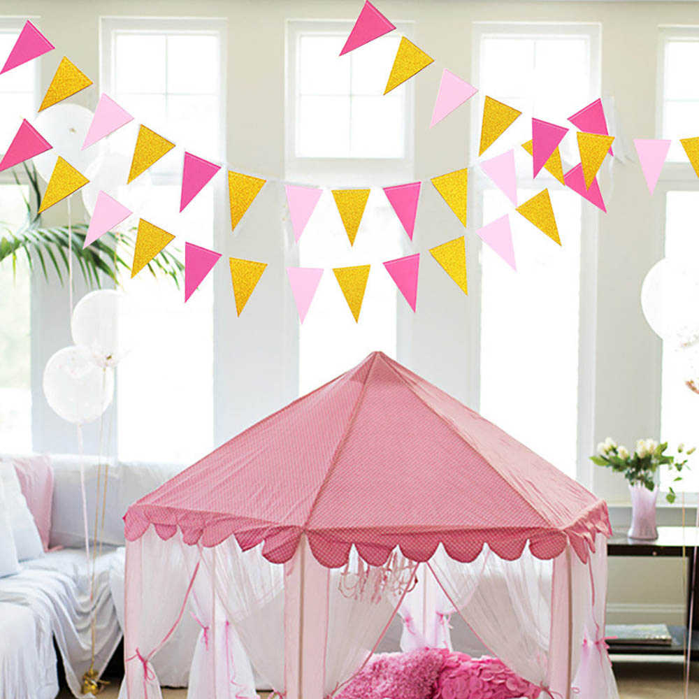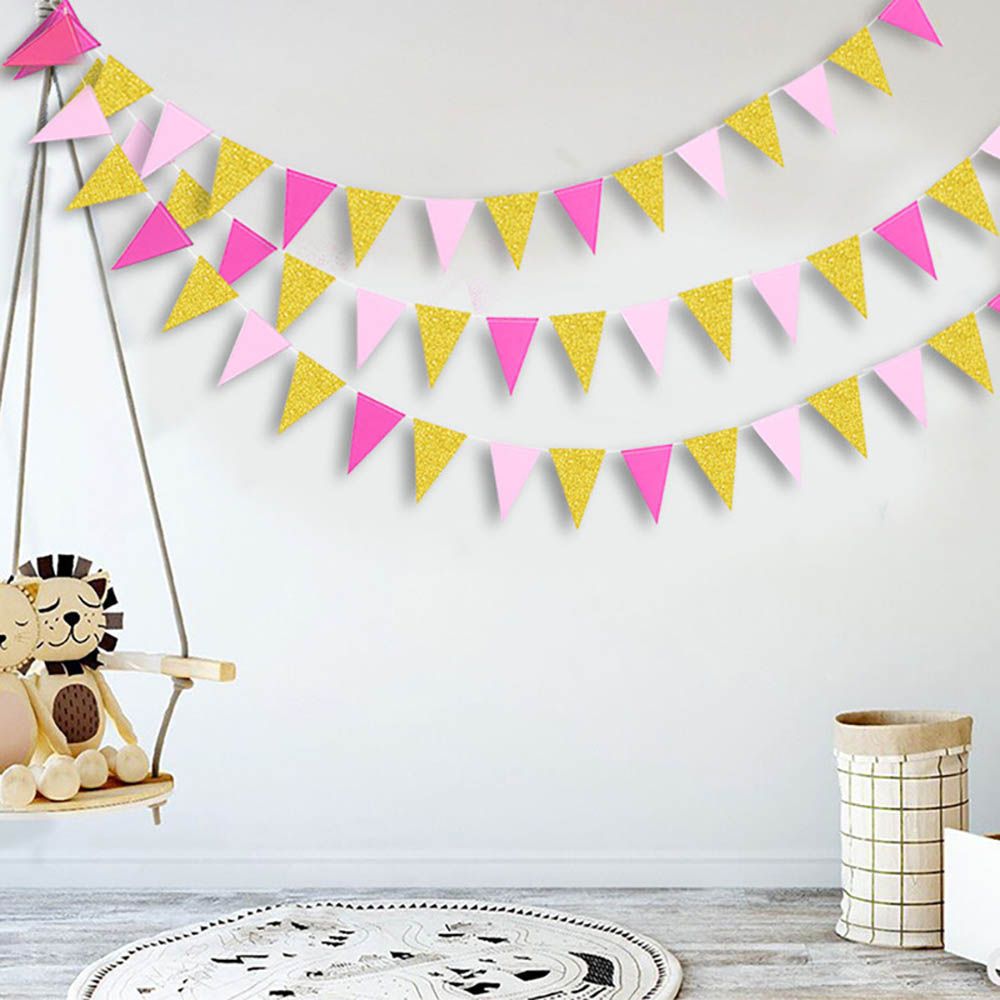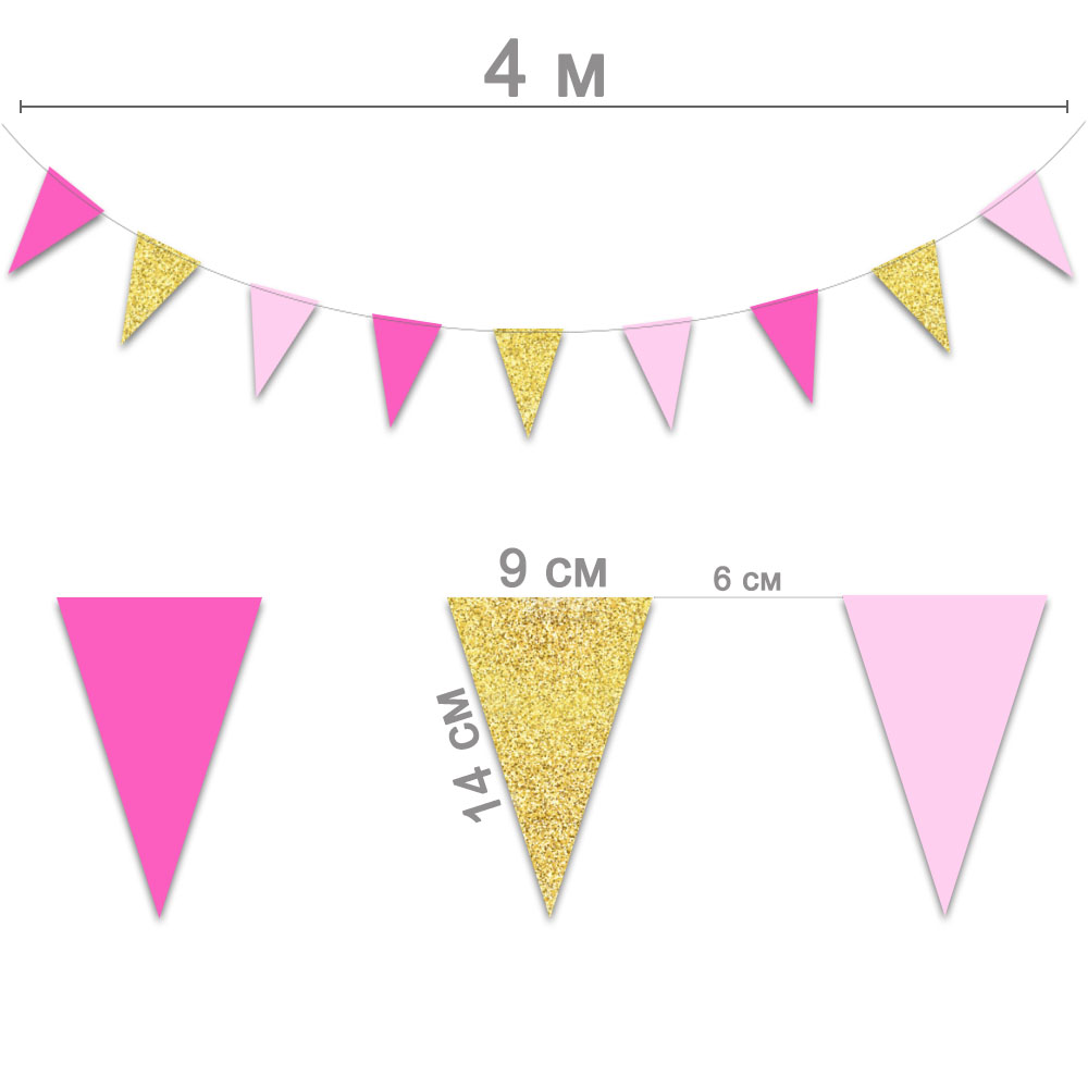Гирлянда-вымпел 9 х 14 см св.розов.+золото+малин. 4 м
