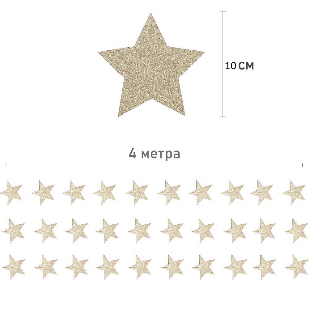 Гирлянда "Звезды" блеск 10 см х 4 м, шампань