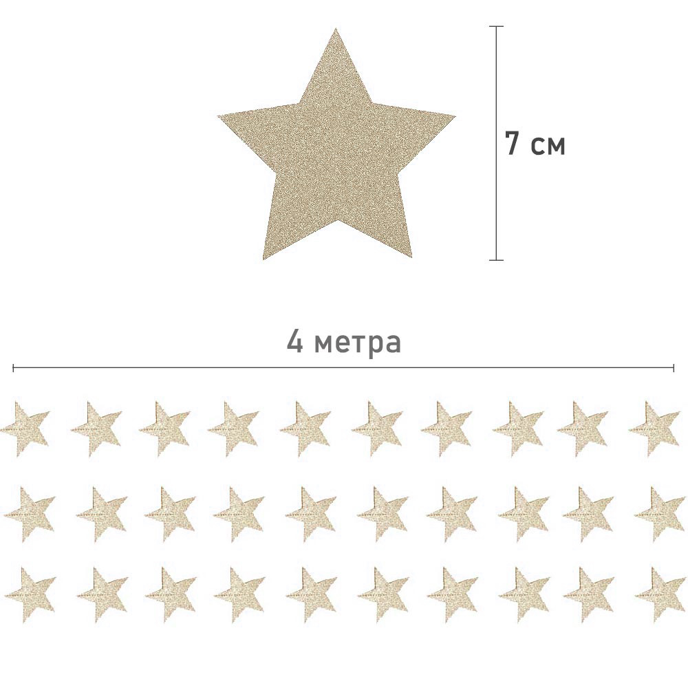 Гирлянда "Звезды" блеск 7 см х 4 м, шампань
