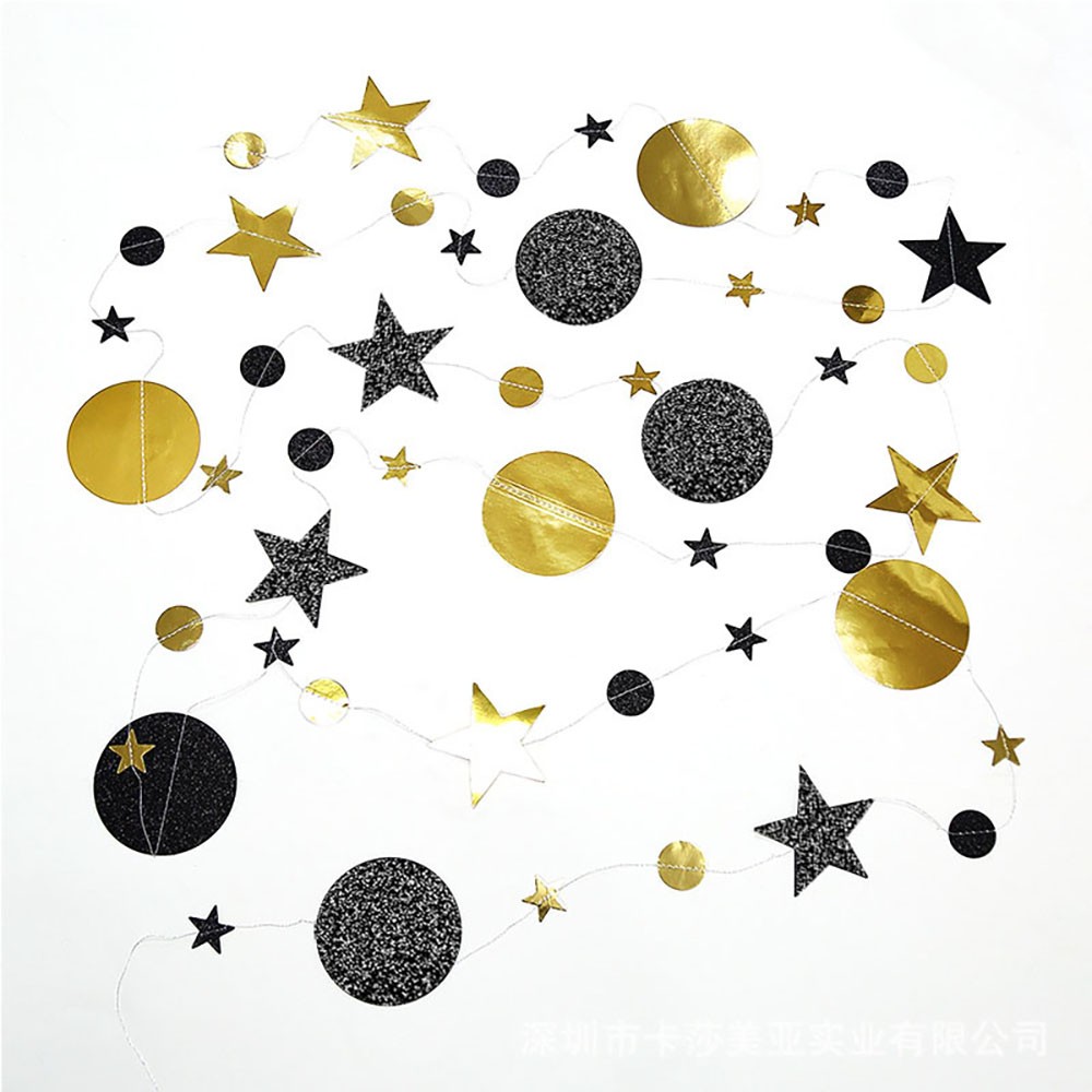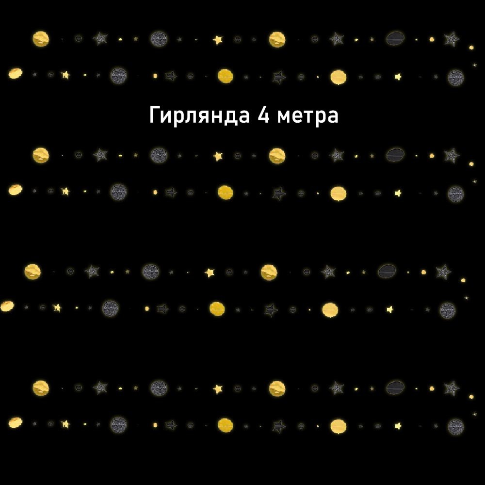 Гирлянда Звезды/Кружочки 4 м металлик/блеск, Золото/Черный