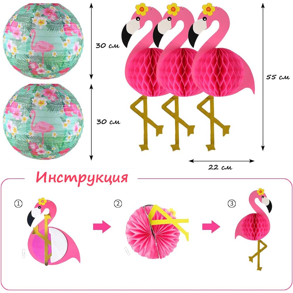 Бумажные подвесные фонарики с фламинго, 2 шт: