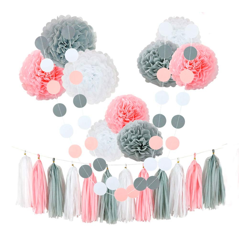Гирлянда тассел 2 м х 35 см х 15 шт (белый + розовый + серый);