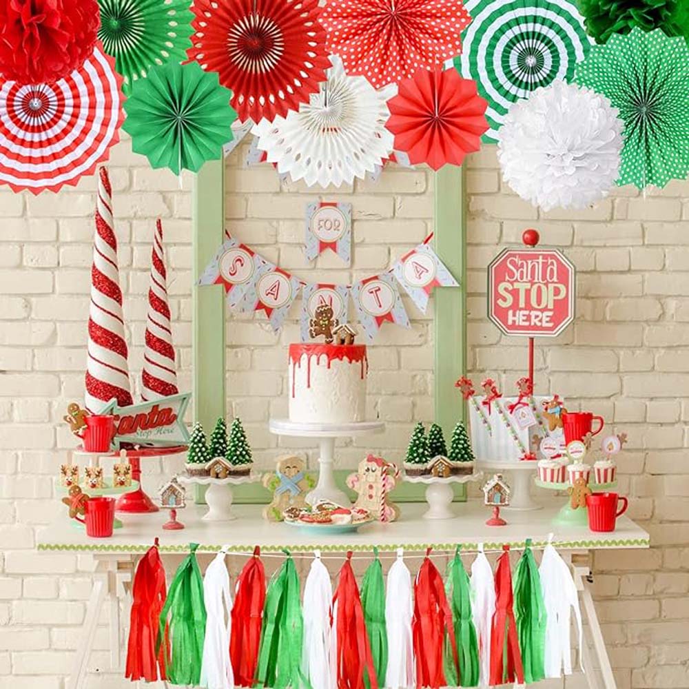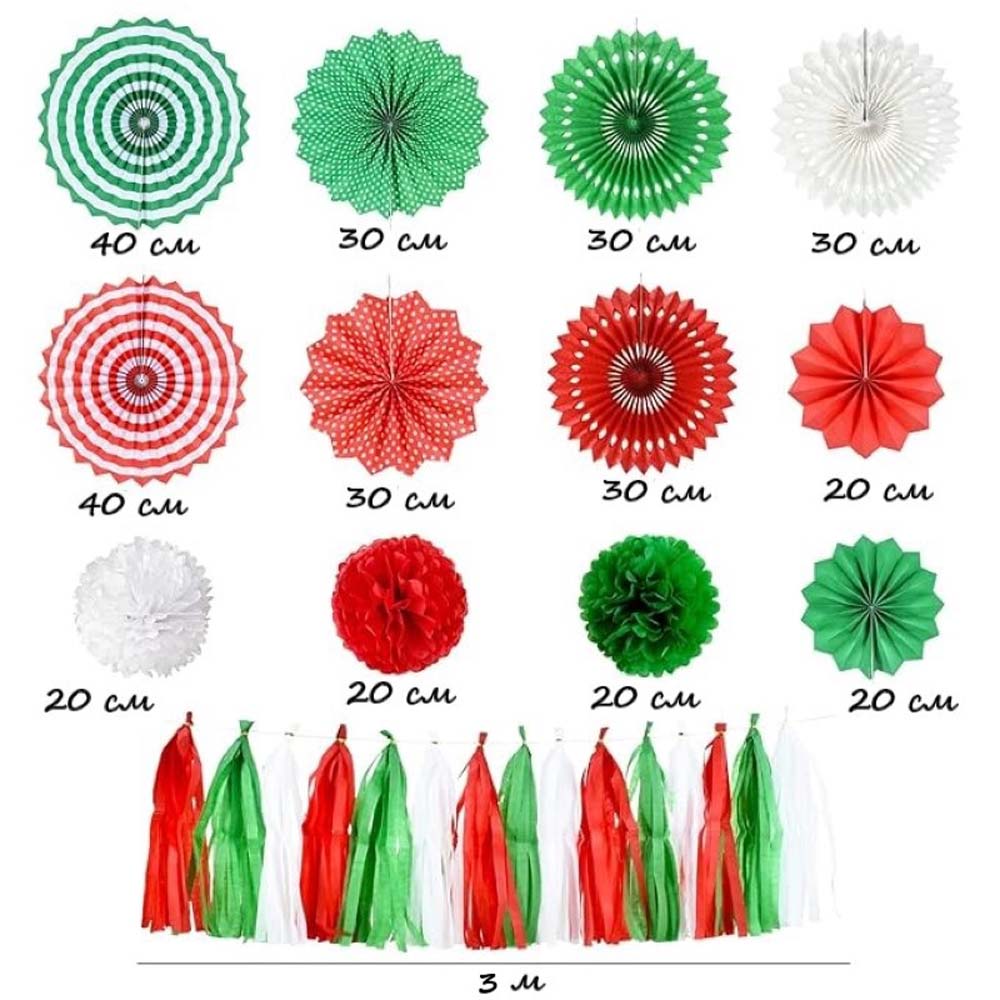 Гирлянда тассел 3 м, красный+зелёный+белый