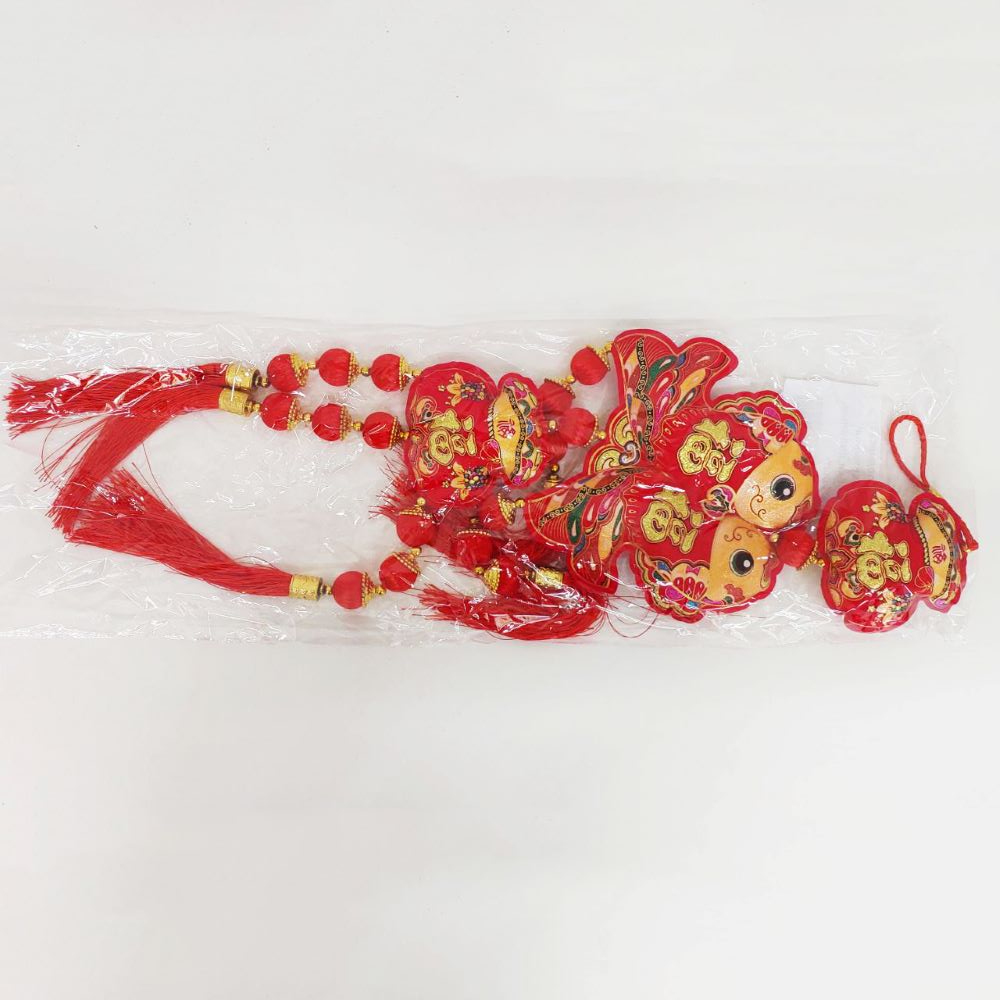 Китайская подвеска 20х83см, Две Рыбки + Денежные мешки - 1 шт