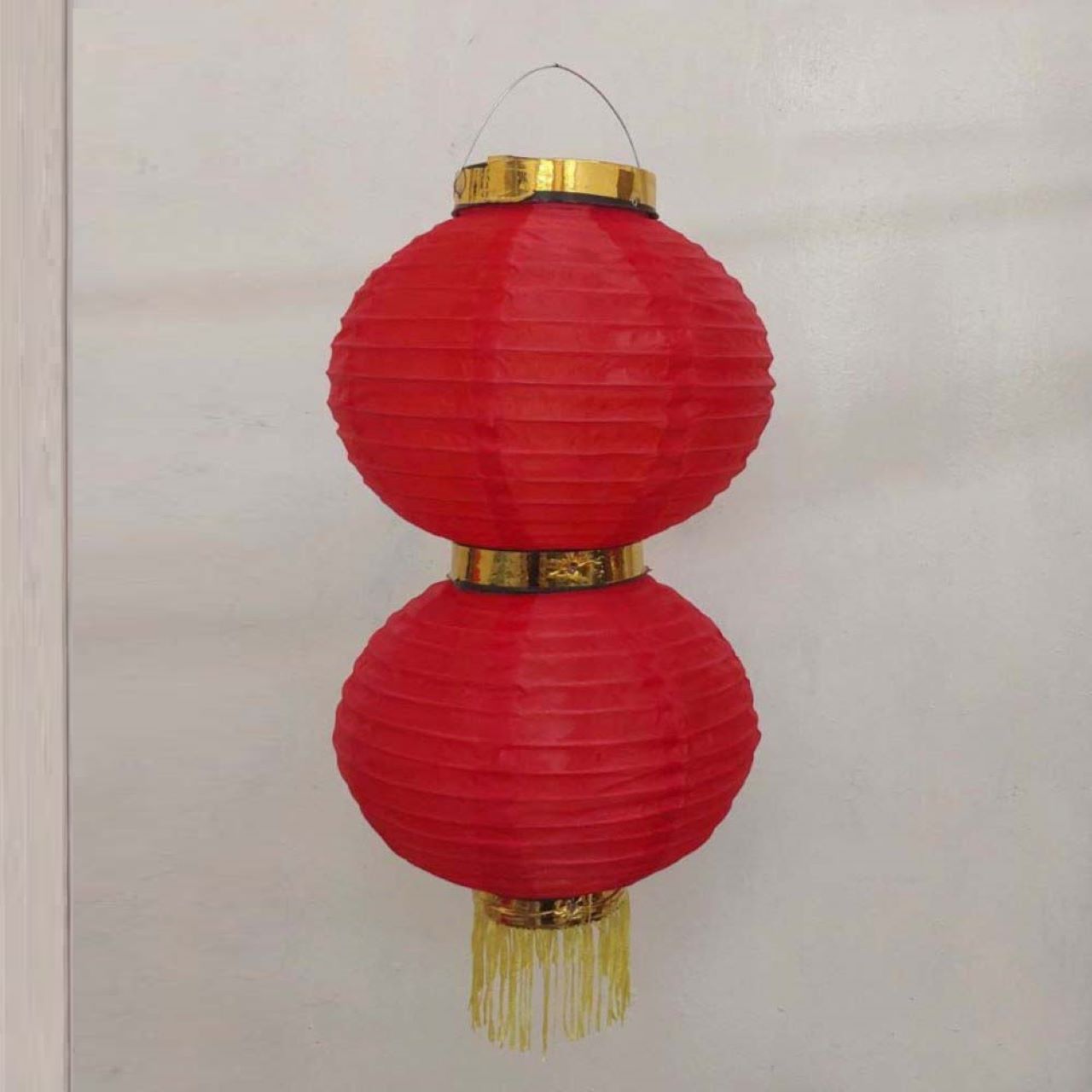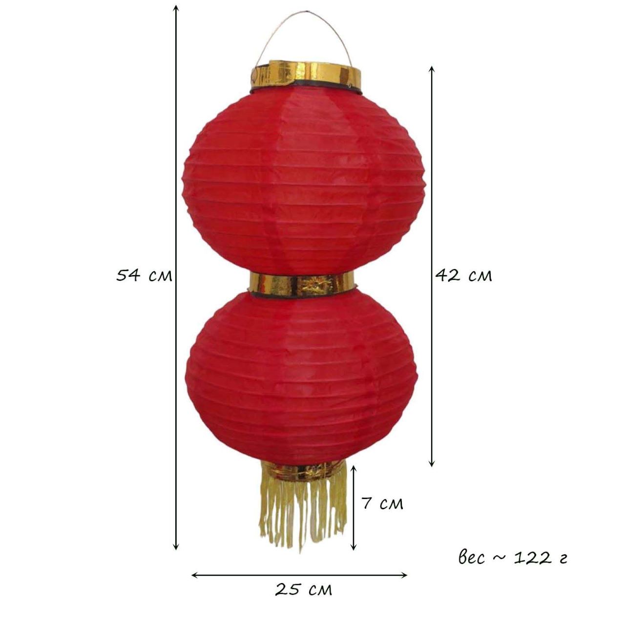 Круглый китайский фонарь состоит из двух ярусов диаметром 25 см каждый.
