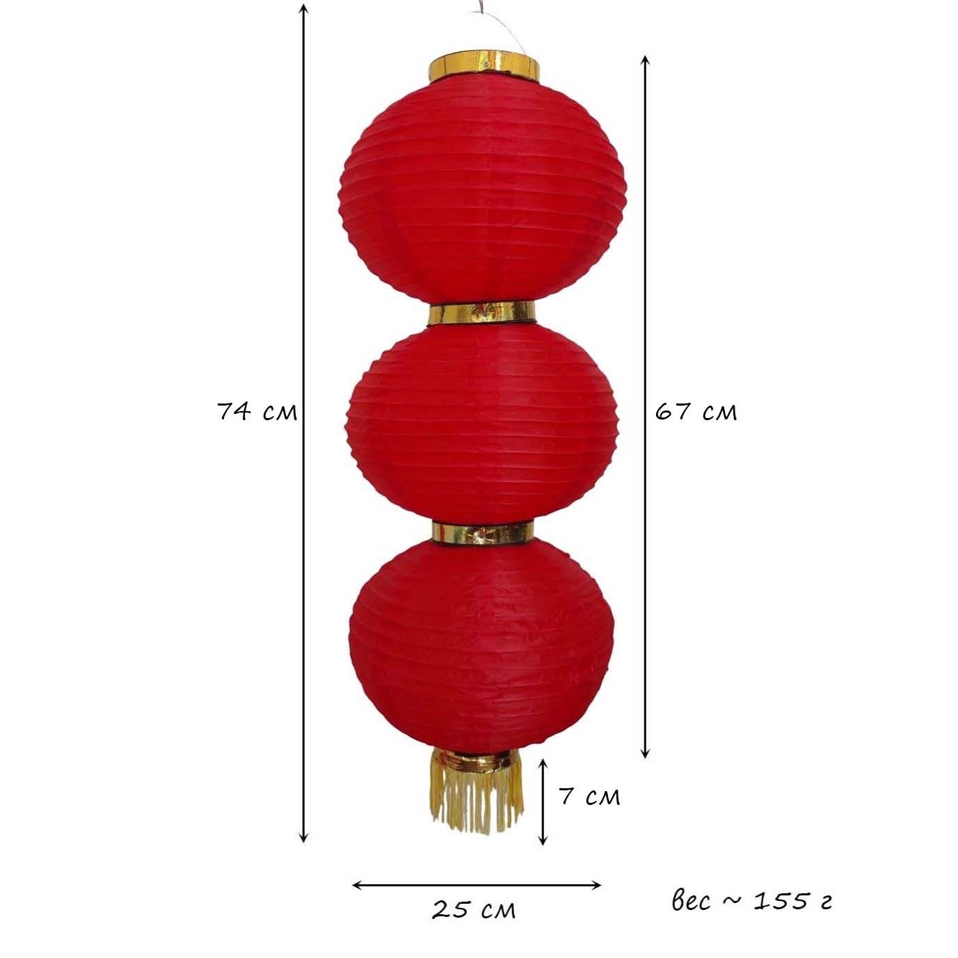Китайский фонарь Круглый, 3 яруса 25см