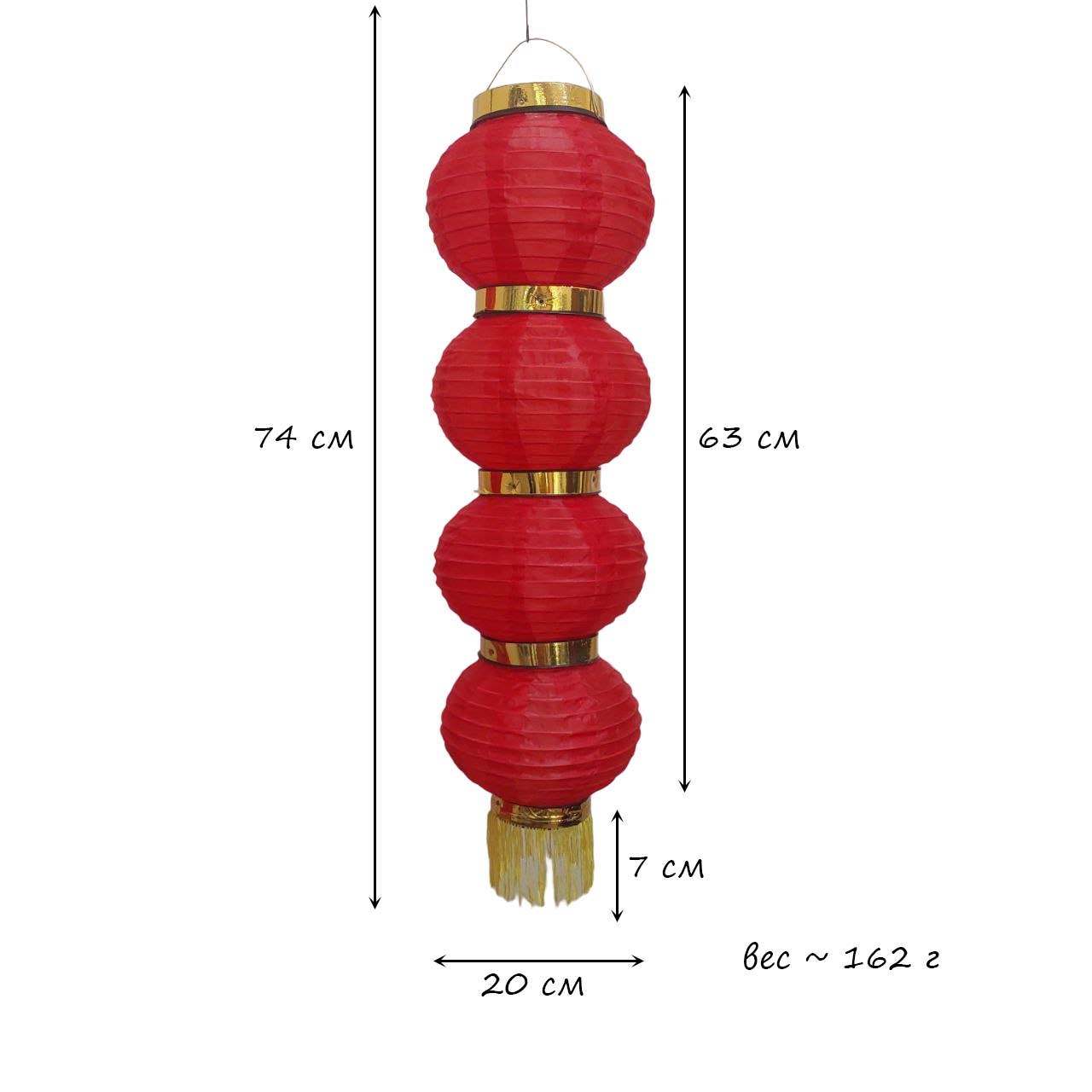 Круглый китайский фонарь состоит из четырех ярусов диаметром 20 см каждый.