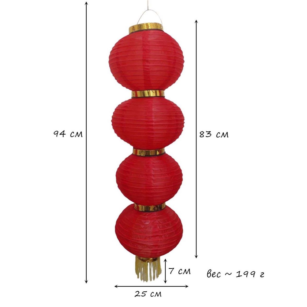 Круглый китайский фонарь состоит из четырех ярусов диаметром 25 см каждый.