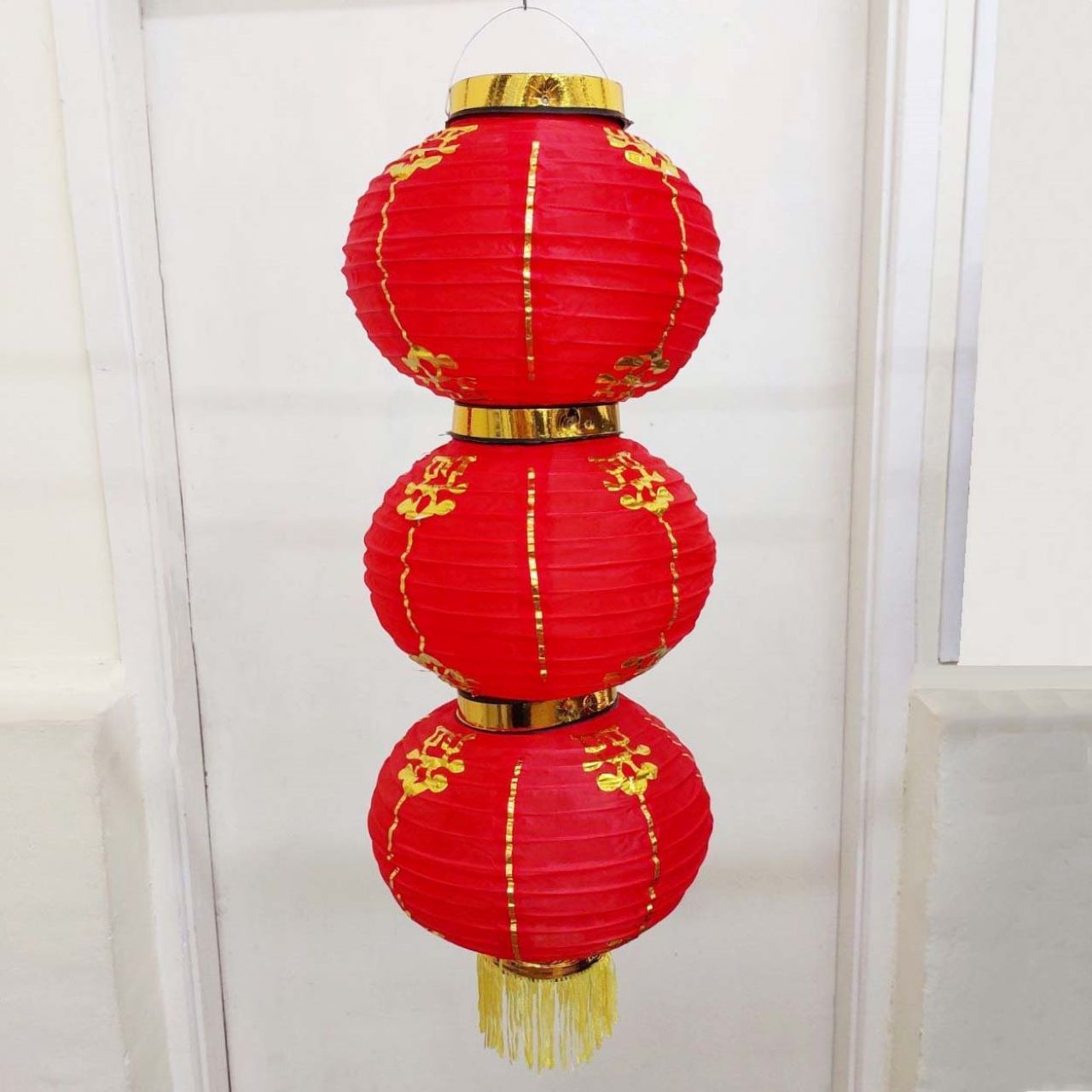 Китайский фонарь Круглый с рисунком, 3 яруса 25см
