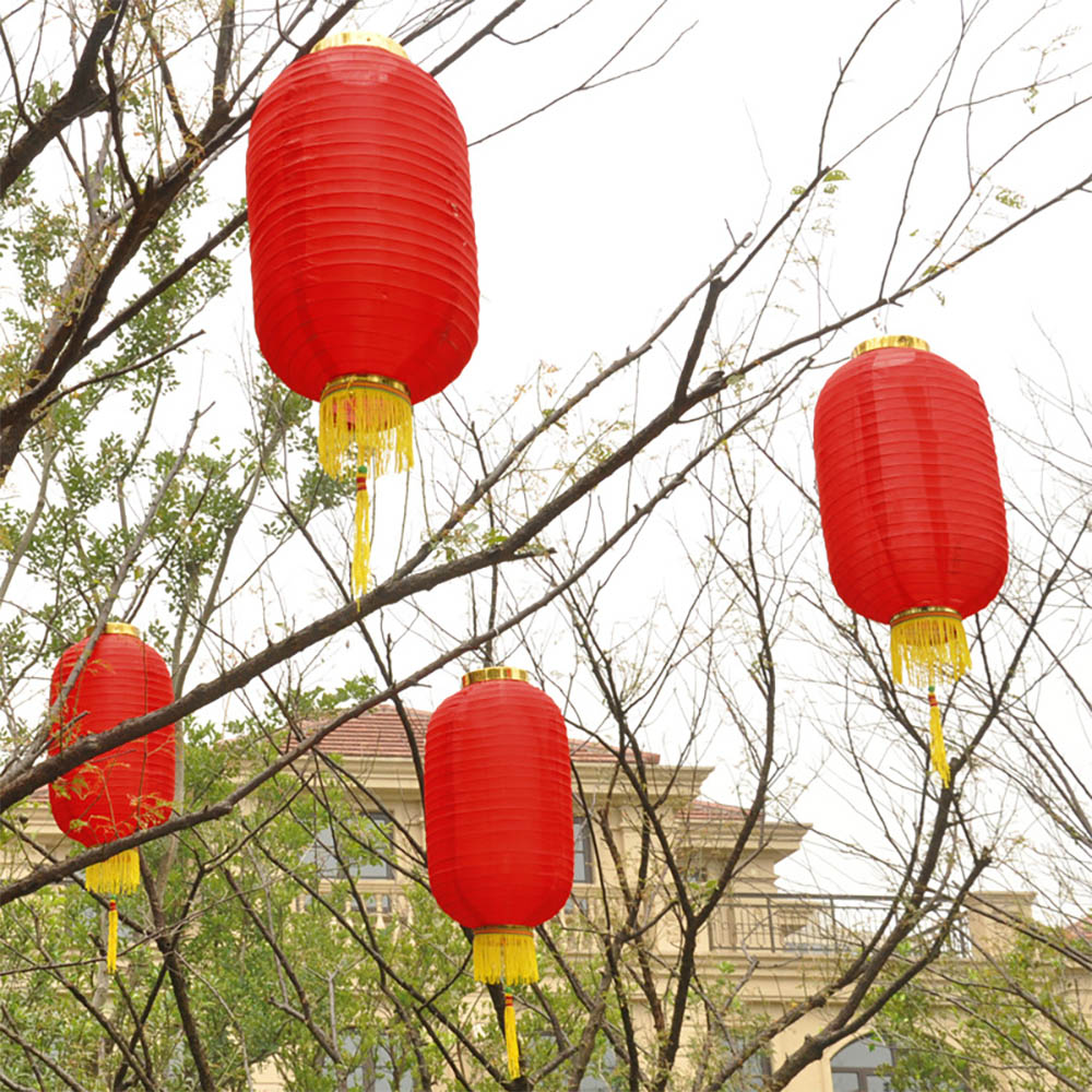 Китайский фонарь Цилиндр с бахромой 16х25 см, красный
