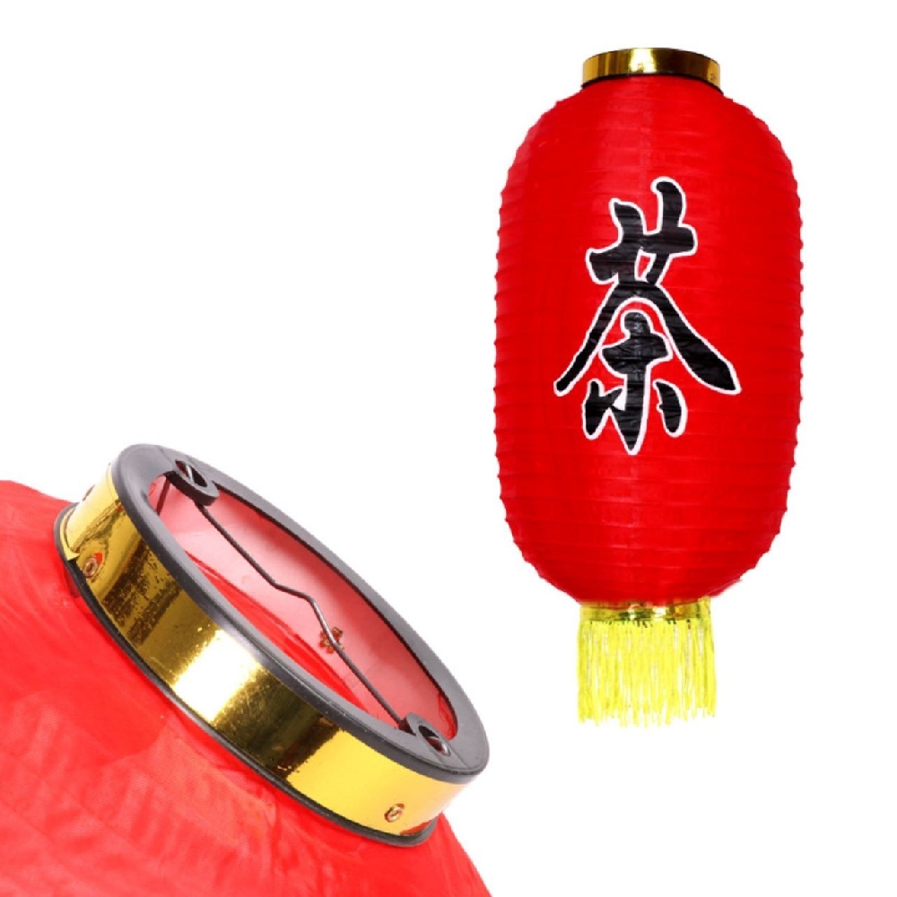 Китайский фонарь Цилиндр с надписью "Чайный" с бахромой 30х55 см, красный