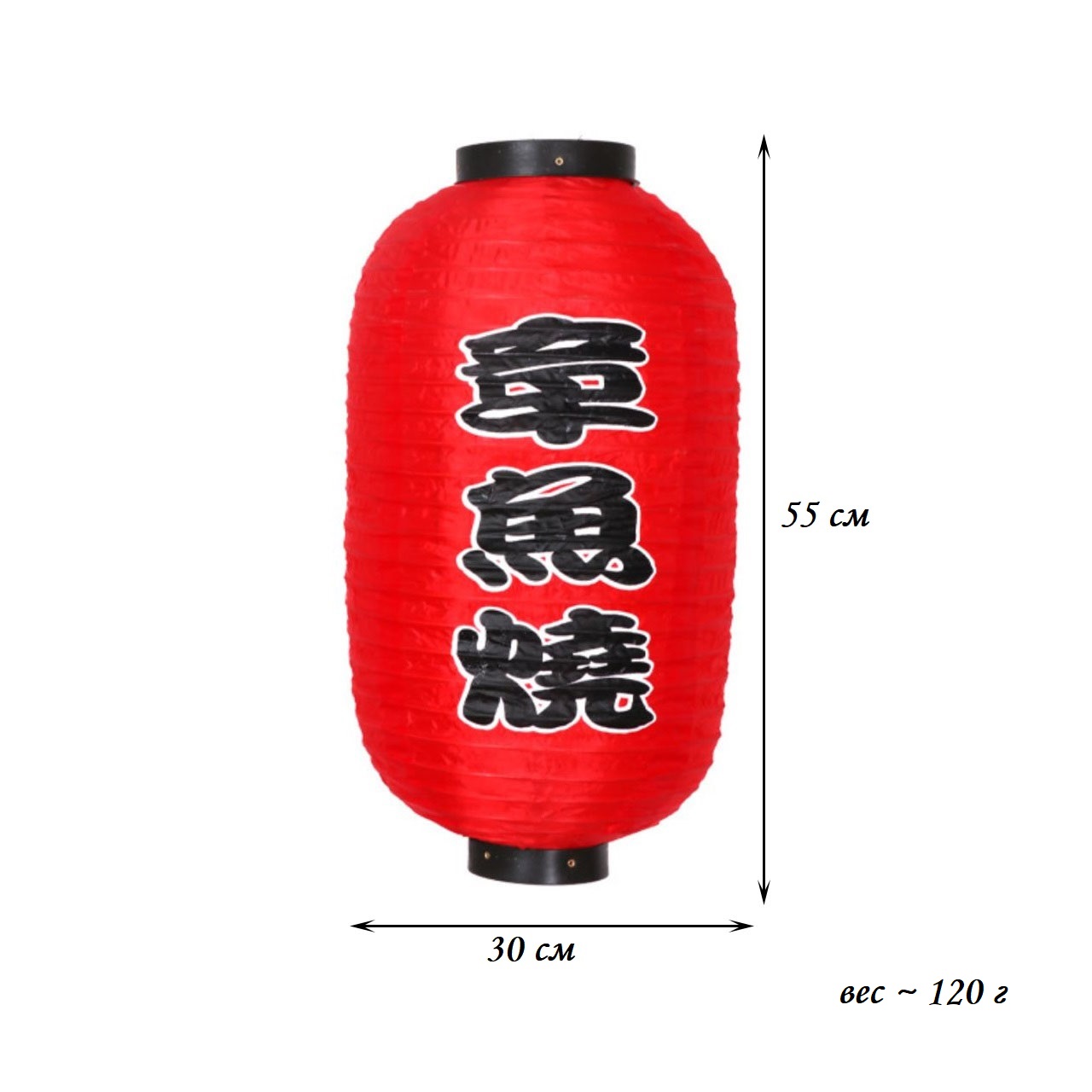 Китайский фонарь Цилиндр с надписью "Такояки" 30х55 см, красный