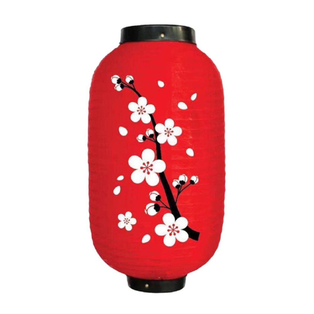 Китайский фонарь Цилиндр "Сакура" крупная 25х45 см, красный