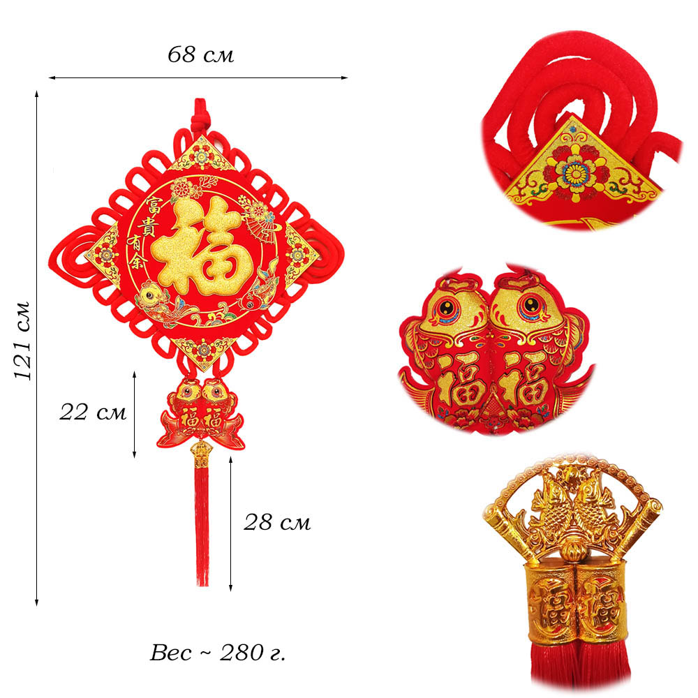 Китайский узел ромб золото НАБОР 2шт (68х112см + 23х112см) рыбки, Уют