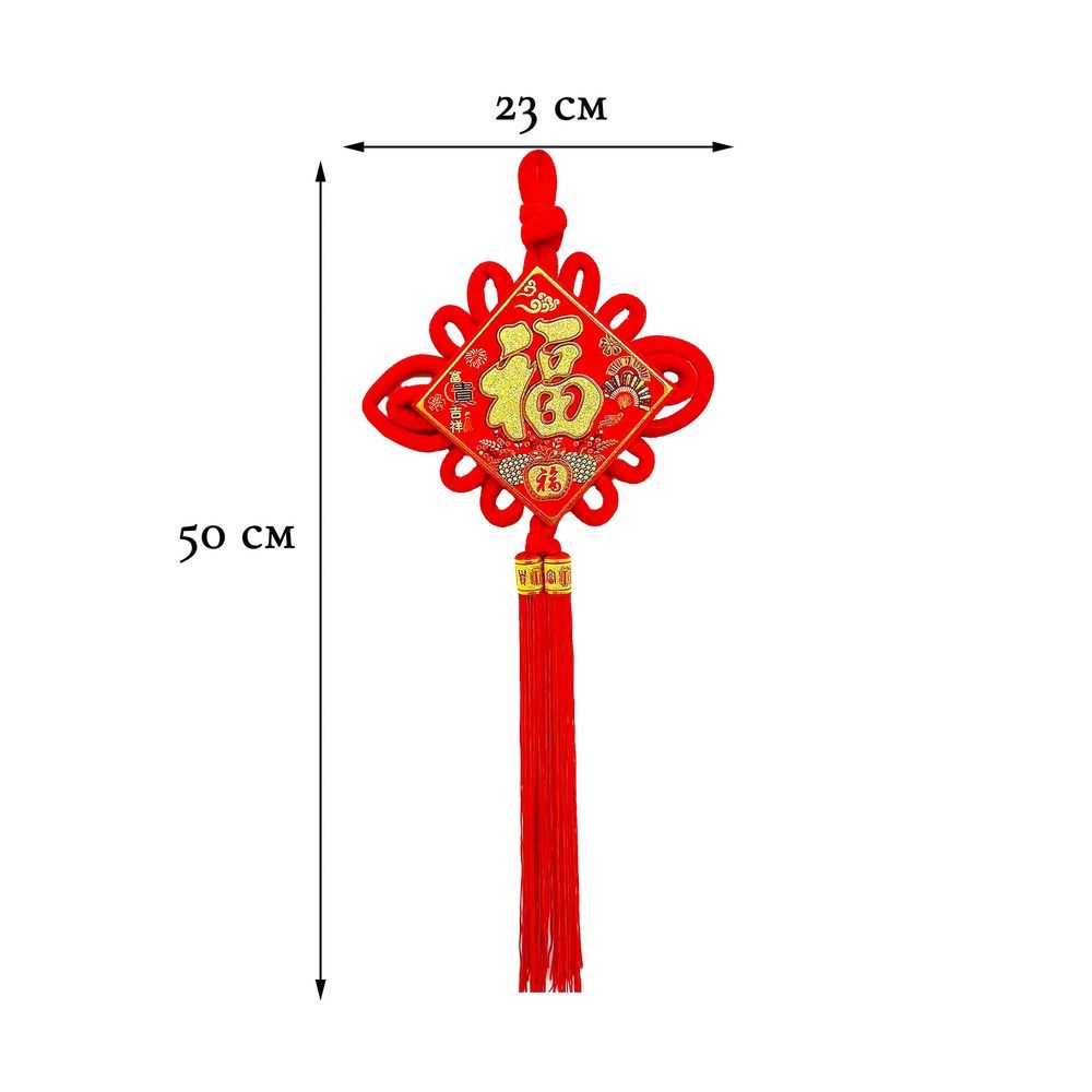 Китайский узел ромб золото кисточка 23х50см, Изобилие