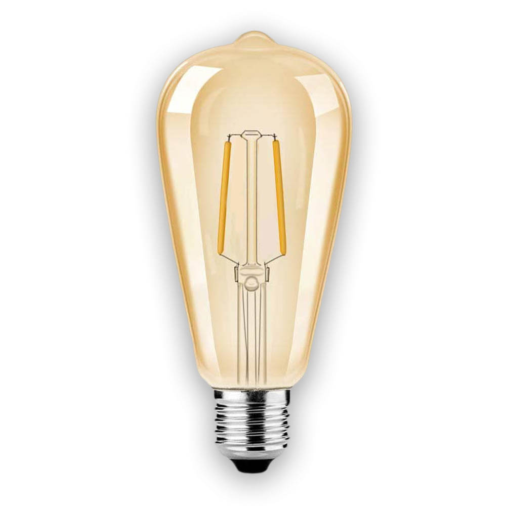 Светодиодная лампа стандарта ST64 с темным стеклом. Подходит для патрона стандарта E27 W2 с теплым свечением 2700K. Применяется преимущественно в гостиных, залах ресторанов и столовых. Удачно имитирует винтажный стиль и при этом отличается минимальным энергопотреблением в 2 Вт. Срок службы превышает 25 000 ч.