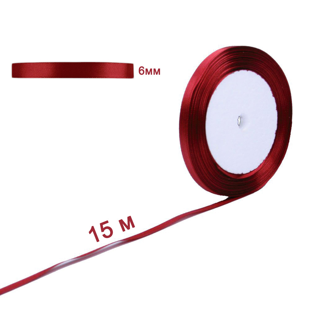 Лента атласная бордовая 6 мм х 15 м