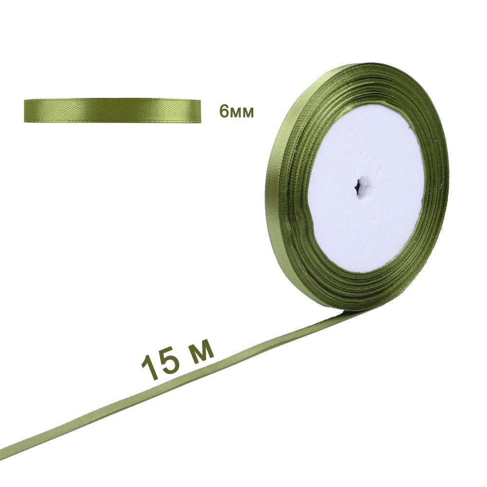 Лента атласная оливковая 6 мм х 15 м