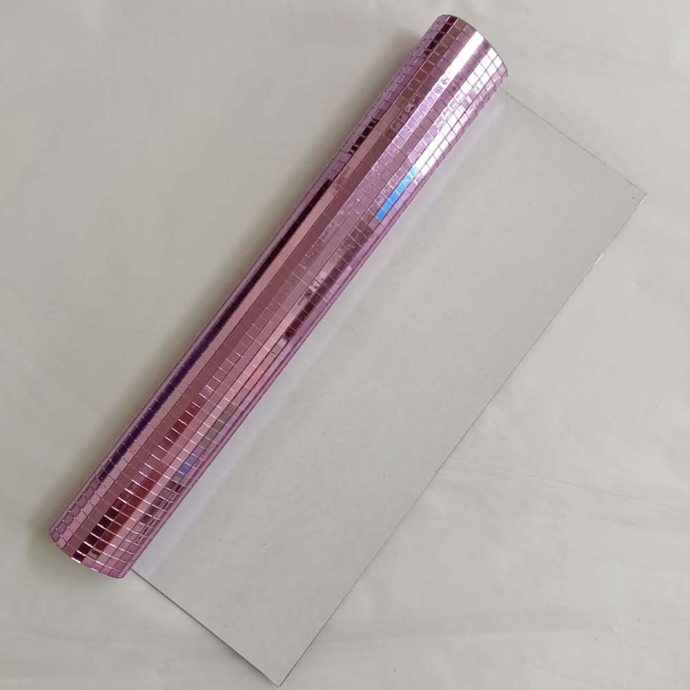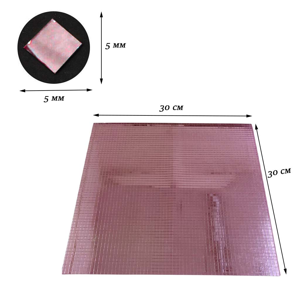 Лента самоклеящаяся зеркальная мозаика стекло, 30х30см 5х5мм, розовый