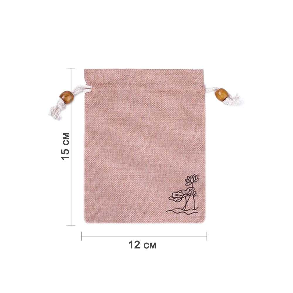 Мешочек из искусственного льна с орнаментом 15х12 см, нежно-розовый